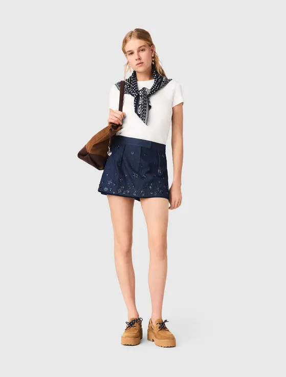 Quần short denim nhiều lớp có hoạ tiết thêuAs low as 7.830.000 ₫ -